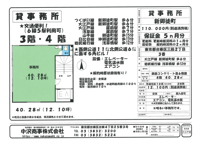 40.28 | 121,000 | 13,310 | 保証金5ヵ月 償却費2ヵ月 |